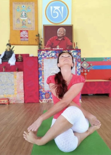 Des Weiteren ist sie zertifiziert als Yoga-Therapeutin, Yoga für besondere Erfordernisse und Yoga für Kinder. Ebenso hat sie die 3 Ebenen von "Tibetischer Ernährung" gemäß der Traditionellen