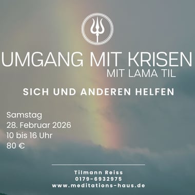 Im Februar geht es um den Umgang mit Krisen. Wodurch können Krisen entstehen? Woran merkt man, dass man in einer Krise steckt und wie geht man mit Krisen um? Wie kann man sich und auch anderen helfen, diese dualistischen Gedankenmuster zu erkennen, zu transformieren und so seine wahre Natur zu erfahren.